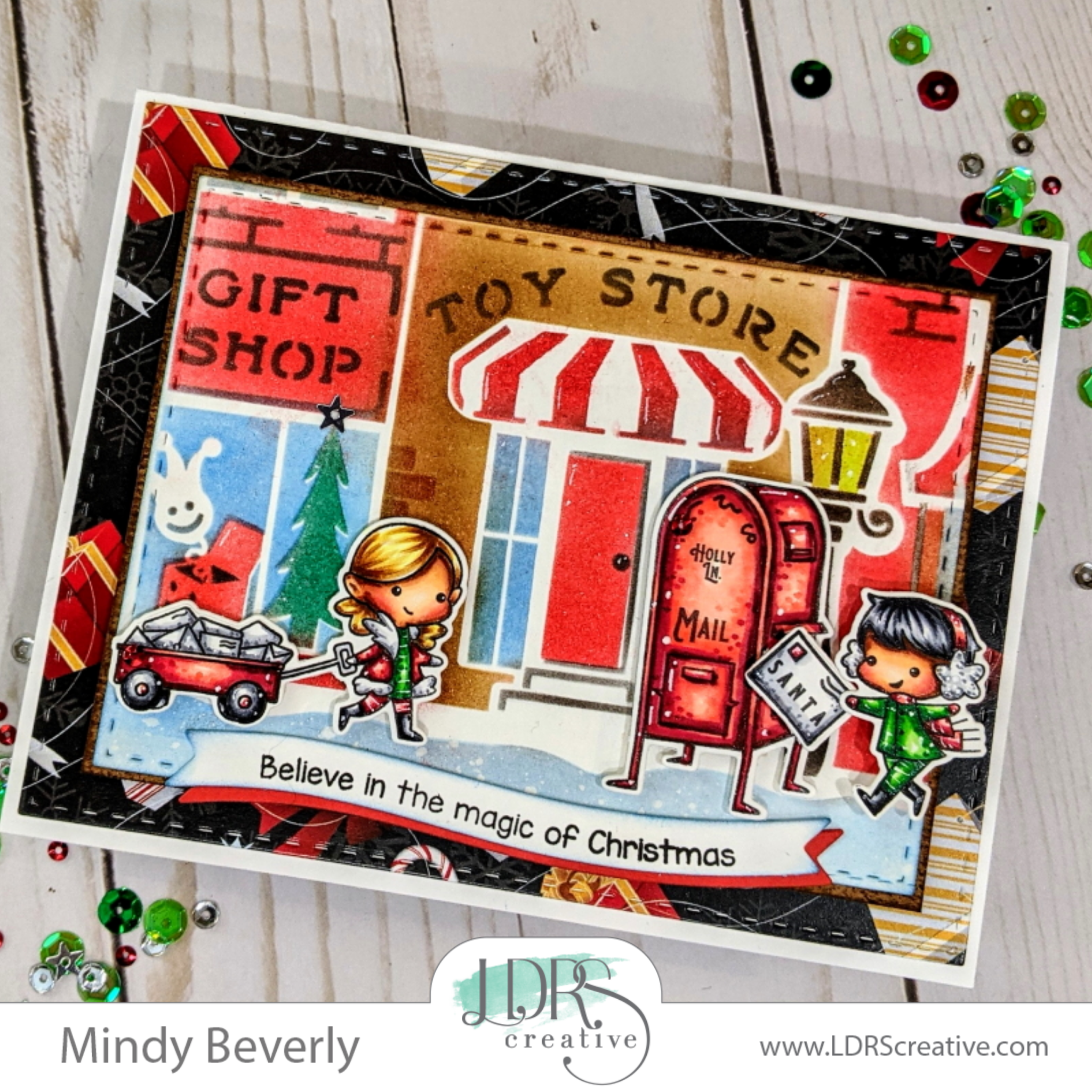 Hello Everyone! Mindy here with you today to share with you a Christmas themed card that I created for inspiration this week featuring some Amazing Stamps, Dies, and Stencils from LDRS Creative.