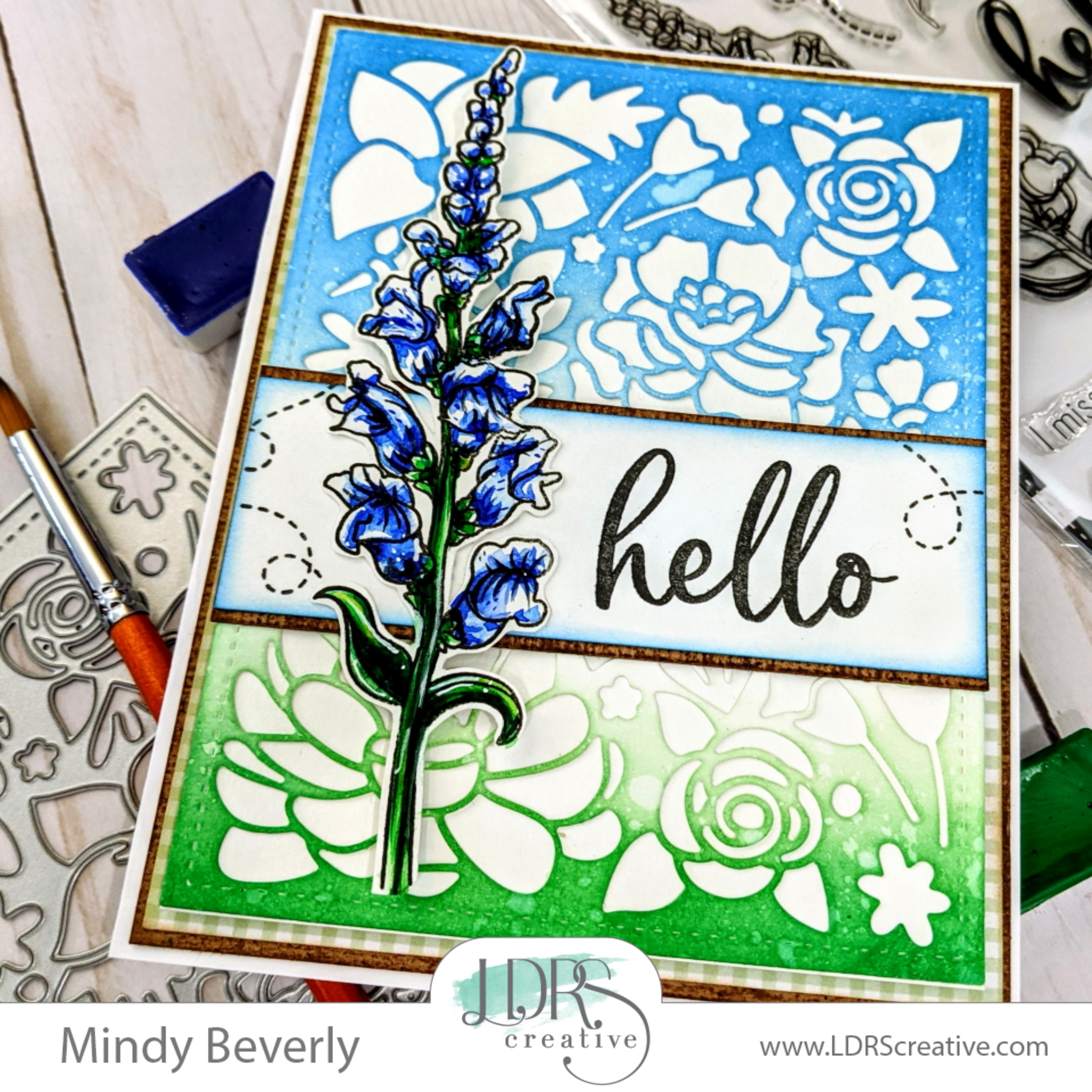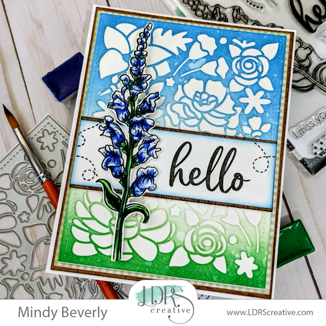 Hello Everyone! Mindy here with you today to share with you a Gorgeous Spring themed card that I created for inspiration this week featuring some Amazing Stamps, Dies, and Stencils from LDRS Creative.