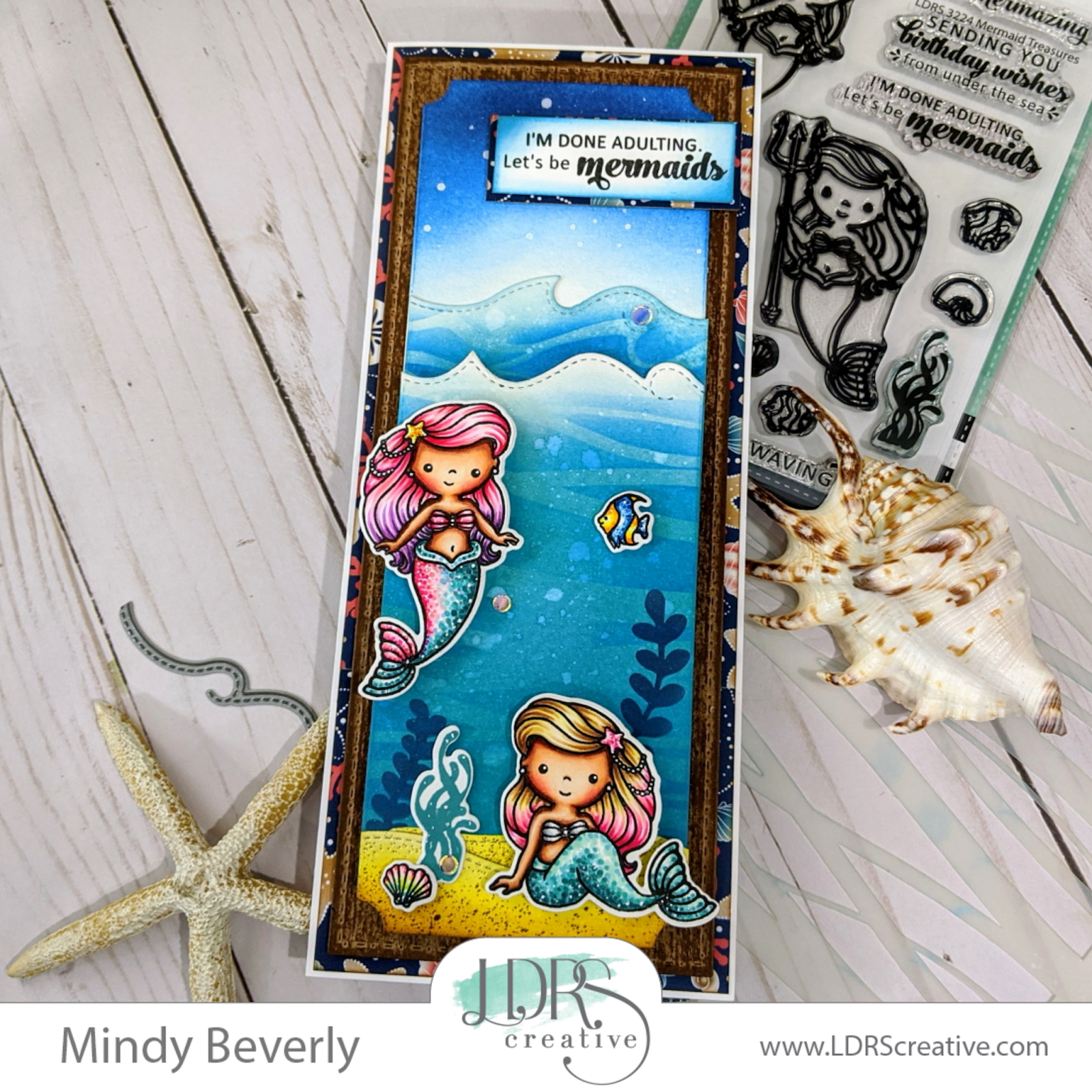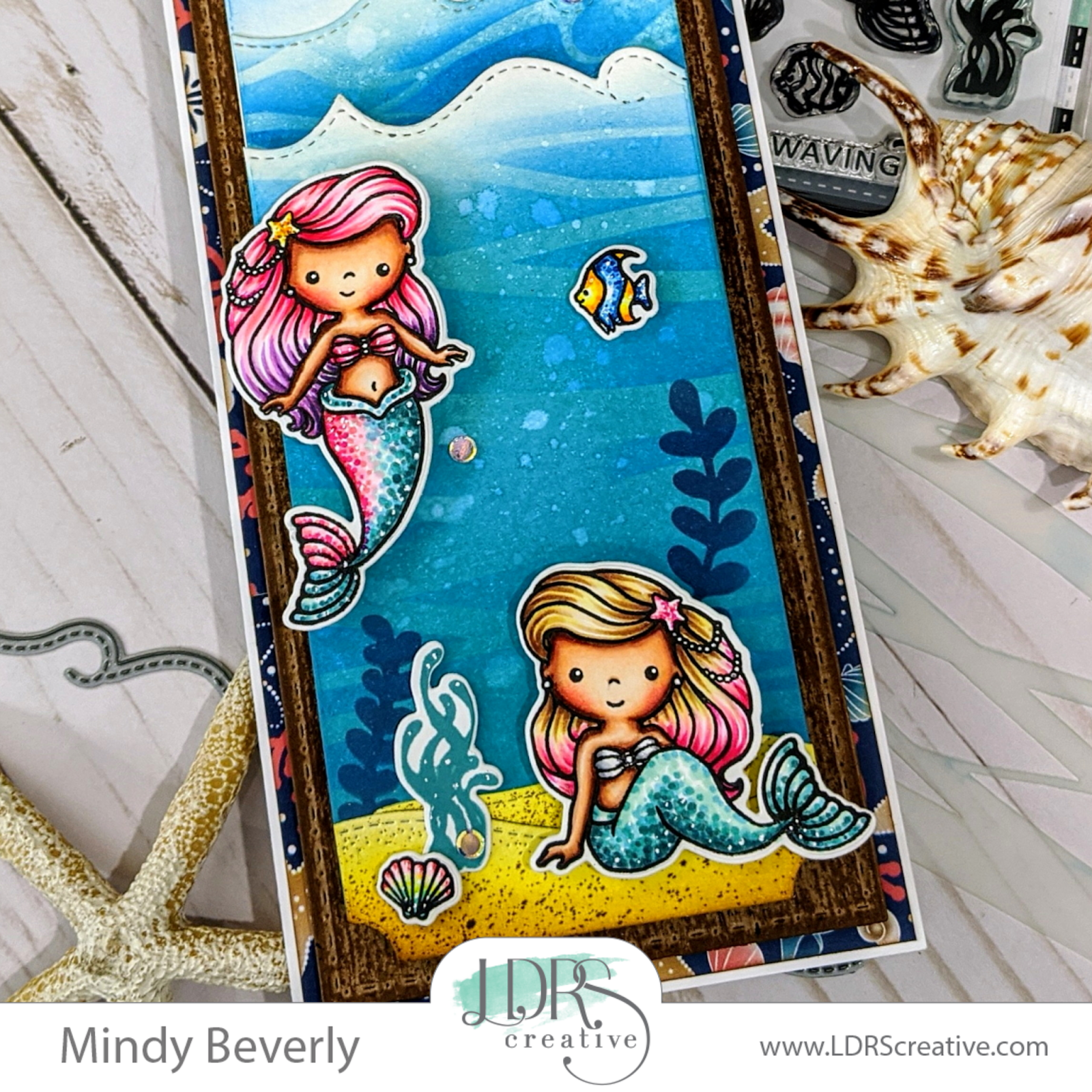 To complete my ocean scene I stamped and colored the Beautiful Mermaids with Alcohol Markers and added them to the front of my card with foam squares for some added dimension.