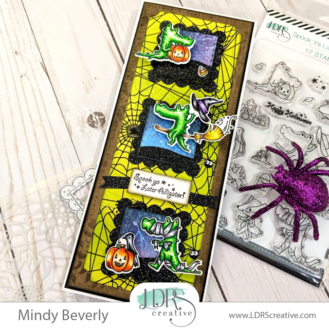 For my card I am showcasing the Absolutely Adorable New Spook Ya Later Alligator Clear Stamp Set, Coordinating Dies, and Stencil. I just Love how versatile the stamps, dies, stencils, and inks are from LDRS Creative, and how they can be used for so many different occasions and projects. Now here is what I created: