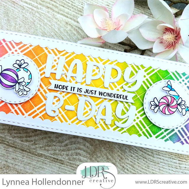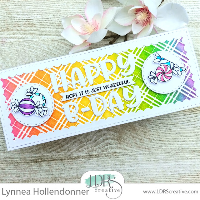 Everyone wants to have a delightfully sweet birthday, right? Today I'll be using LDRS Creative goodies and I'm going to show you how I stretched a stencil to make it cover a slimline card to make a rainbow birthday card!