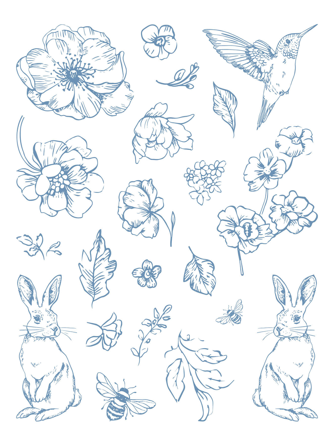 Bring the beauty of nature to your projects with the Floral Muse 5x7 Stamp Set. Featuring 21 exquisitely detailed stamps - including flowers of various sizes and varieties, leaves, a hummingbird, bees, and bunnies - this set is perfect for creating stunning arrangements or unique backgrounds. Mix and match the images to design personalized patterns, color beautiful floral scenes, or craft eye-catching cards and scrapbook pages that are sure to impress.