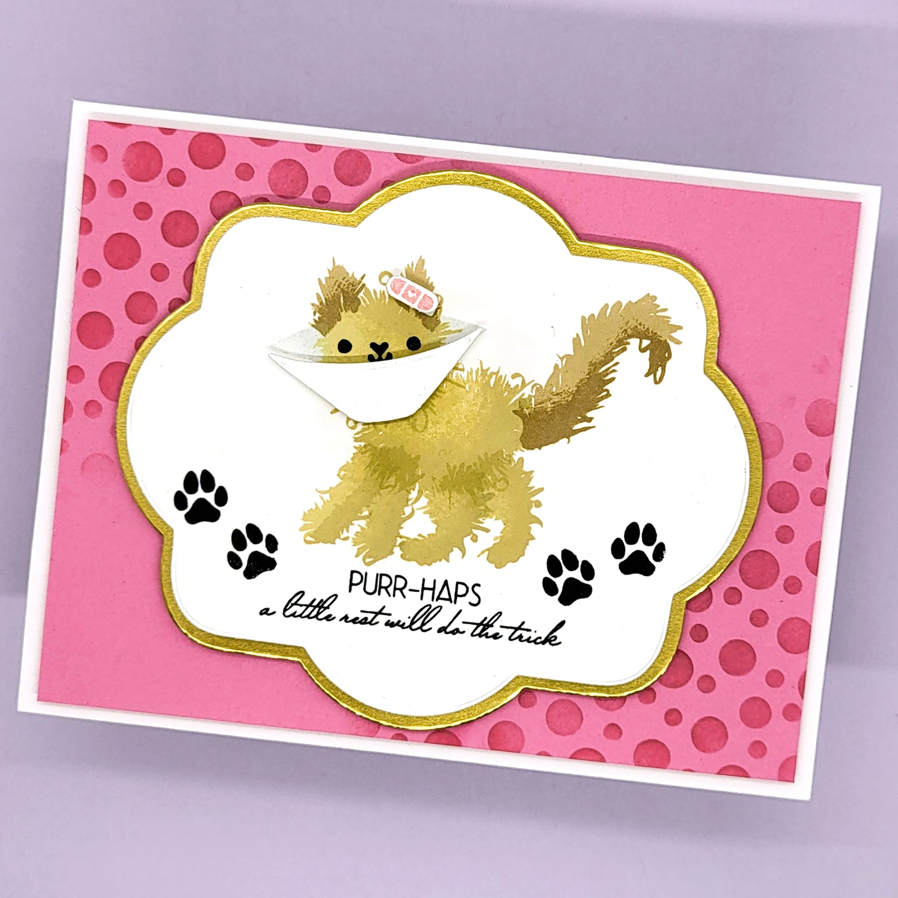 Calling all dog and cat lovers! Our Fuzzy Wuzzies have been domesticated into your lovable best friends. This add-on lets you mix and match heads, bodies, legs, and tails to create the perfect cat or dog character - whether they've been naughty or just a little mischievous. Top it off with the iconic “cone of shame” and finish your projects with pun-filled sentiments like “PURR-HAPS a little rest will do the trick” and “PAW-sitive vibes coming your way.” Coordinating dies make layering and assembling your furry friends simple and fun, perfect for cards, tags, and projects full of personality.
