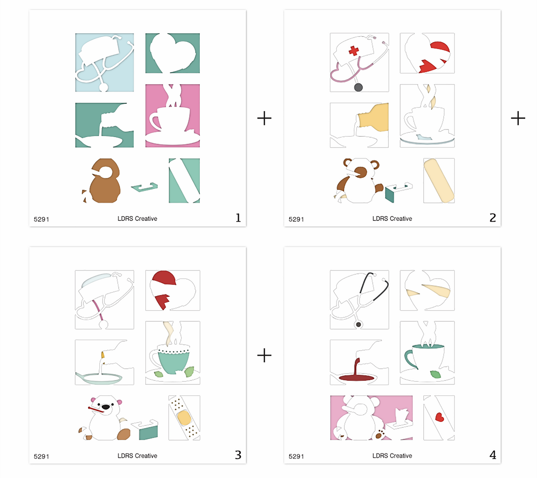 Send a little love and healing with the Get Well Soon Postage Collage Layering Stencils. This set of stencils lets you create sweet, comforting scenes featuring hot tea, a cute adhesive bandage, and an adorable teddy bear. Perfect for layering with inks to craft thoughtful, cheerful projects, these stencils coordinate beautifully with previously released Postage Collage Dies. Lift someone’s spirits with handmade cards and creative projects that say “get well soon” in the most heartfelt way.