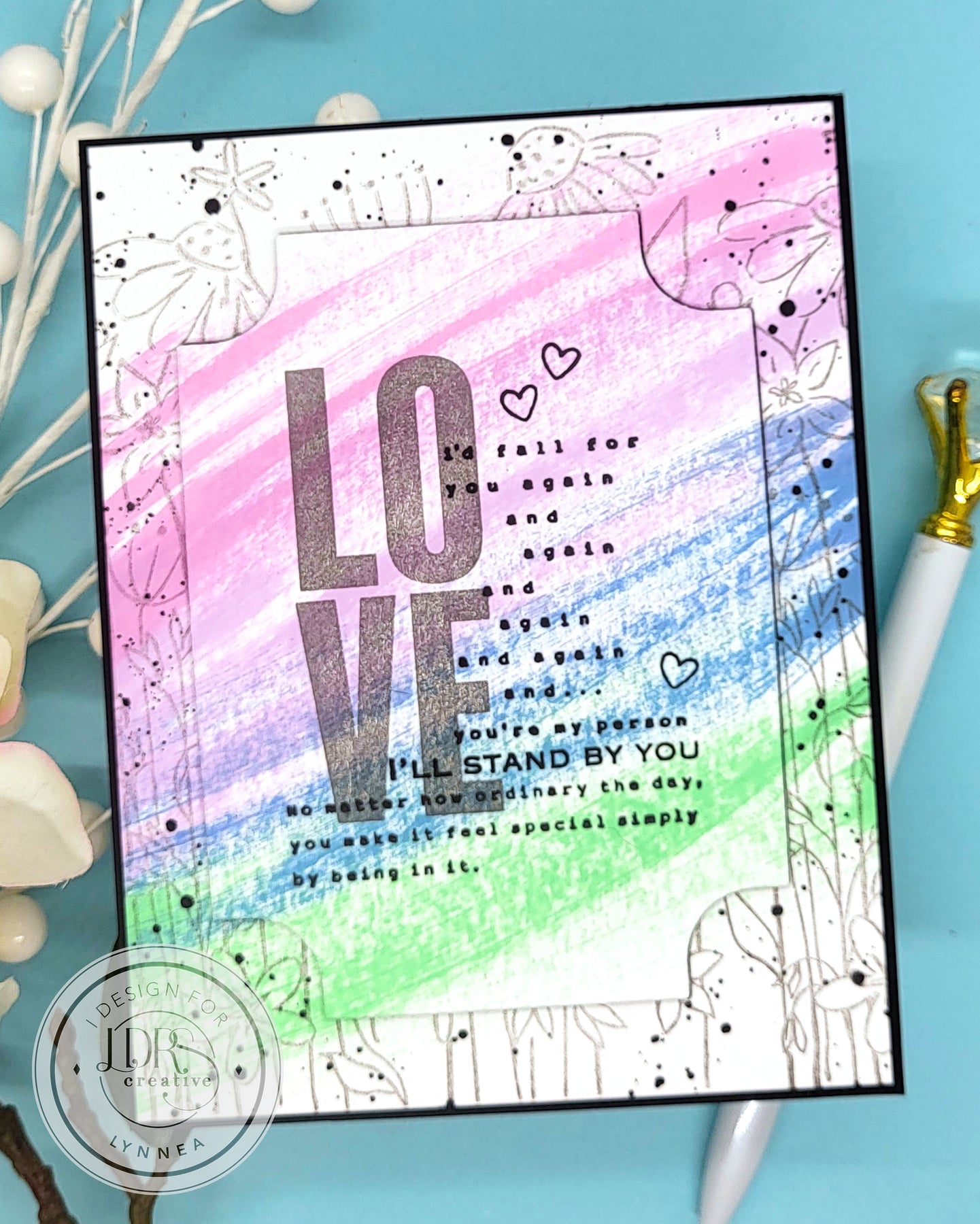 Create a modern collage-style card using the About LOVE Collage Stamps and Never-Ending Wildflower Stamps from LDRS Creative! In this tutorial, Lynnea uses a simple direct-to-paper ink swiping technique with four beautiful ink colors to build a soft, artistic background. Plus a free-form collage technique to give the card depth without overpowering the main elements.