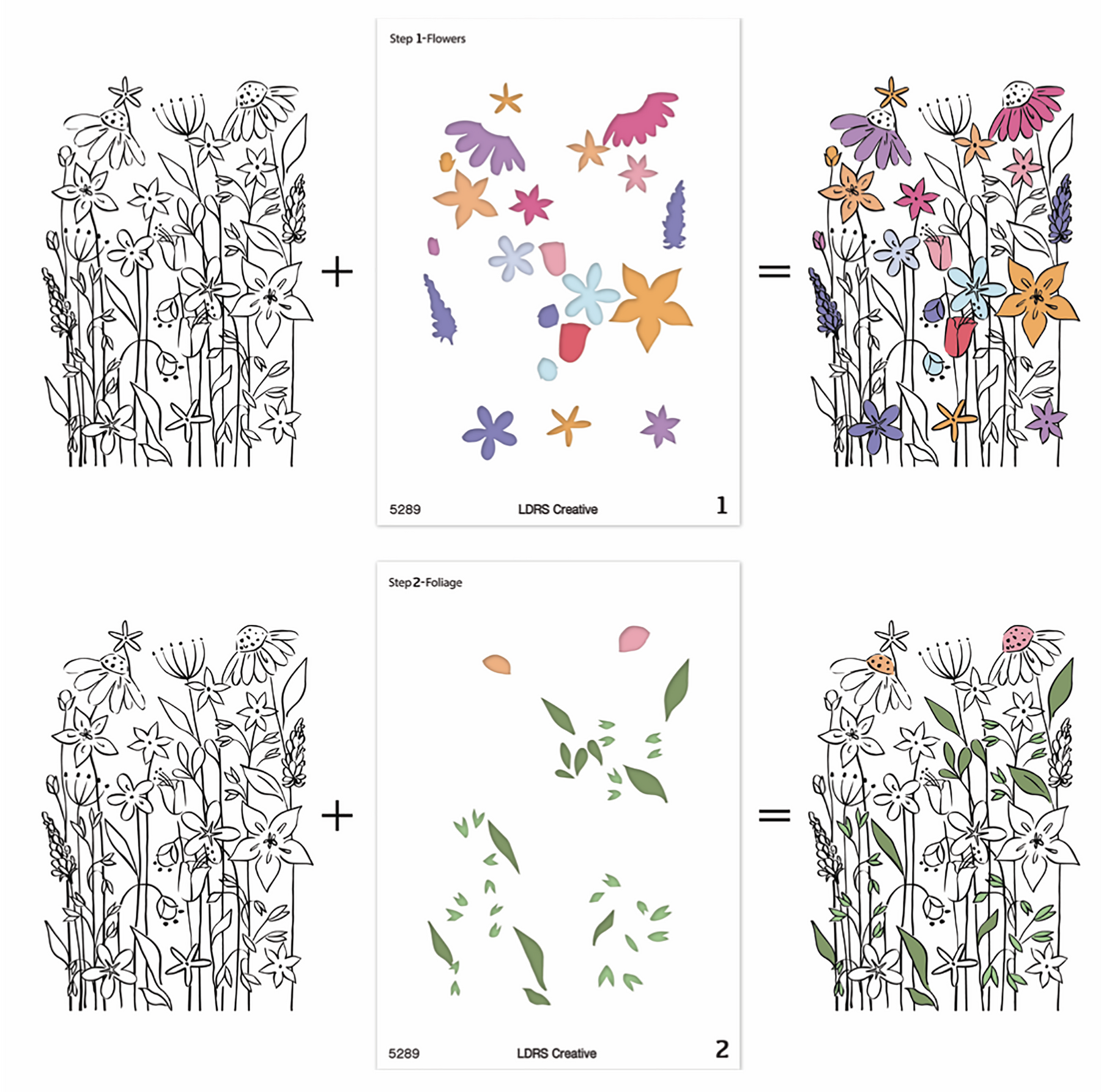 Bring your Never-Ending Wildflowers 4x6 Stamp (3614) to life with this set of 2 coordinating stencils. Designed to perfectly color the flowers and leaves, these stencils make it easy to add depth, dimension, and vibrant color to your stamped images. Simply grab your favorite inks or mediums, blend through the stencils, and create a stunning field of wildflowers in no time.