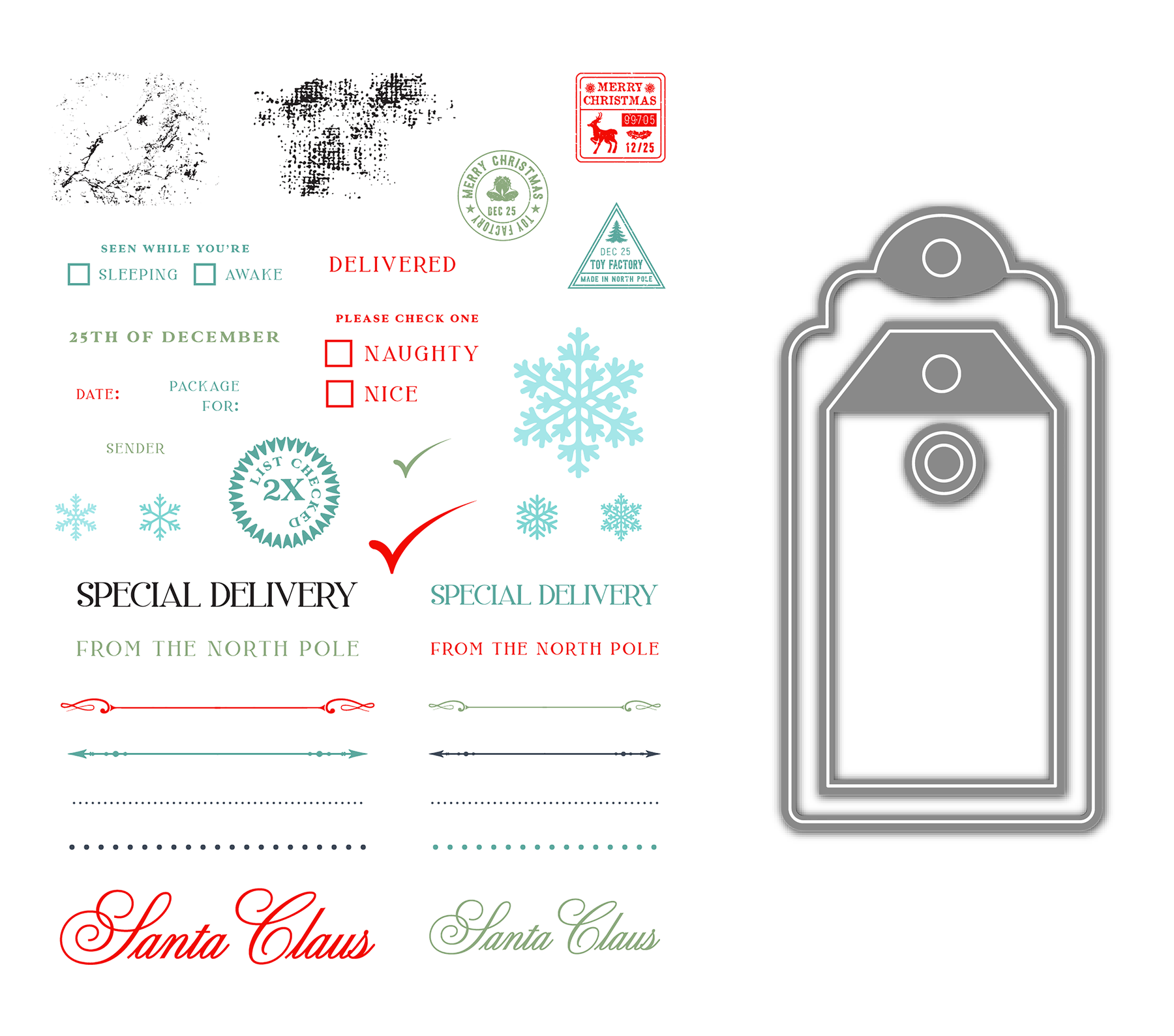North Pole Collage Stamps and Mixed Tag Dies Bundle