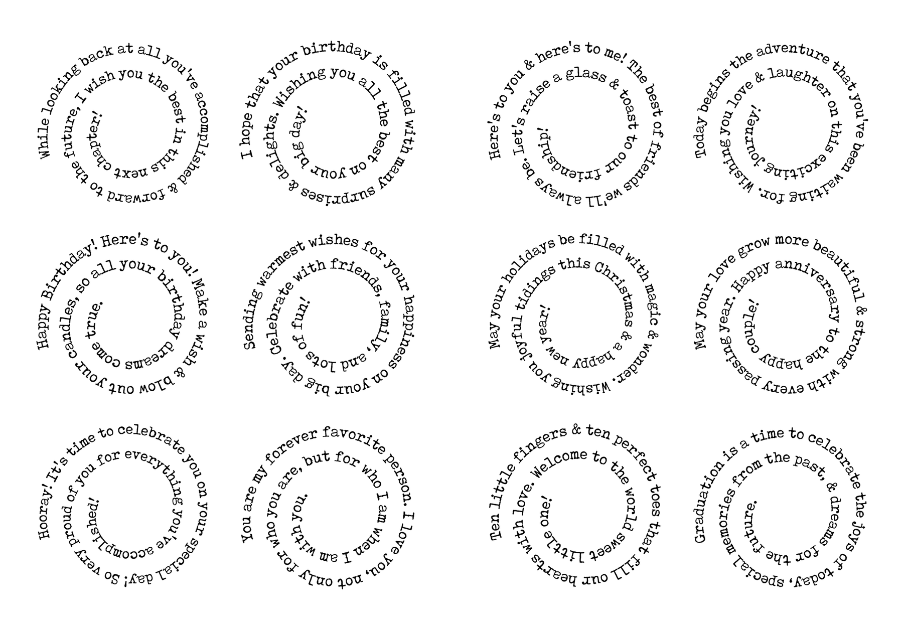 These one-of-a-kind stamps bring instant movement and fun to your projects! Each sentiment winds its way in a circle, making it easy to pair with your favorite shape dies or to stamp directly onto your project.
